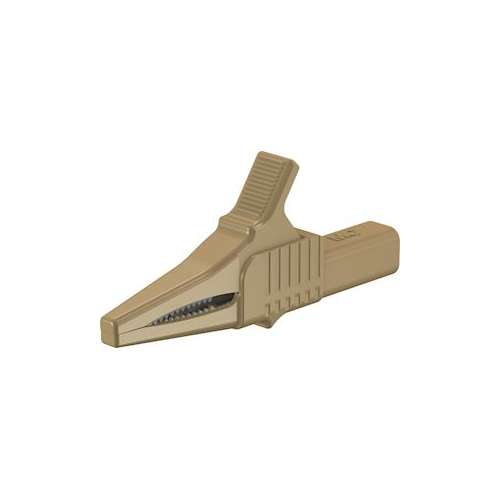 Pince crocodile en laiton parfaitement isolée. Mâchoires acérées pour pièces massives et surface de contact pour conducteurs fins. Douille rigide D=4mm dans le corps isolant, adaptée à la connexion de fiches D=4mm à fourreau rigide.