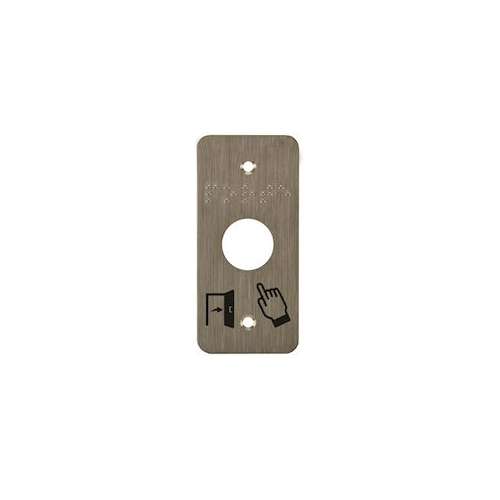 Capteur infrarouge sans contact acier inoxydable, IRS19 / IRS38 - Accessoires, SSP101 - Caractéristiques : •Matériel : Acier inoxydable •Marquage plaque : Pictogrammes "Porte & doigt" et "PORTE" en braille •Perçage plaque : Diamètre 19 mm •Dimensions (L x h x p) : 39,5 x 84,5 x 1 mm •Poids brut / Poids net : 0,029 Kg / 0,028 Kg •Conditionnement par : 1 ou 100 ou 200 •Code douane : 8302411000 •Code EAN 13 : 3760273112790