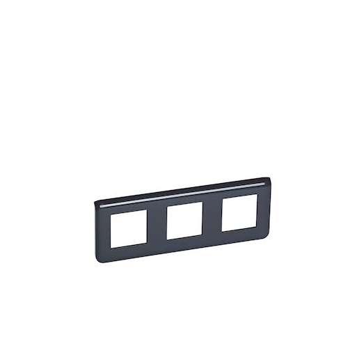 Plaque de finition Mosaic 3x2 modules montage horizontal finition anthracite à clipser sur support Batibox 6, 8 ou 3x2 modules - démontage facile et rapide grâce à la présence d'encoches