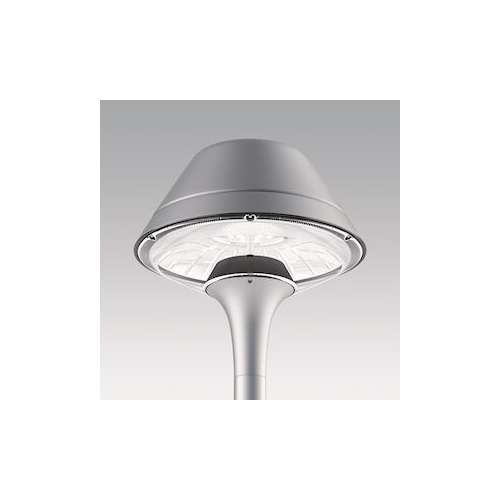 Plurio Direct : Lanterne LED décorative à montage top avec distribution Radialement symétrique. Driver avec 18 LED entraînés à 700mA. Classe électrique II, IP66, IK08. Base : coulé aluminium, thermopoudré gris argent. Chapeau : forme original, aluminium, texturé gris argent. Diffuseur : anti-UV, transparent Polycarbonate (PC) avec prismes anti-éblouissement. Optique à lentille direct avec réflecteur interne Equipé d'un 50% circuit de réduction de puissance, qui entre en vigueur 3 heures avant et 5 heures après un minuit calculé. Il peut être désactivé à l'installation avec un interrupteur interne facilement accessible. Livré avec LED 4 000 K. Montage top sur mât de Ø 60mm.