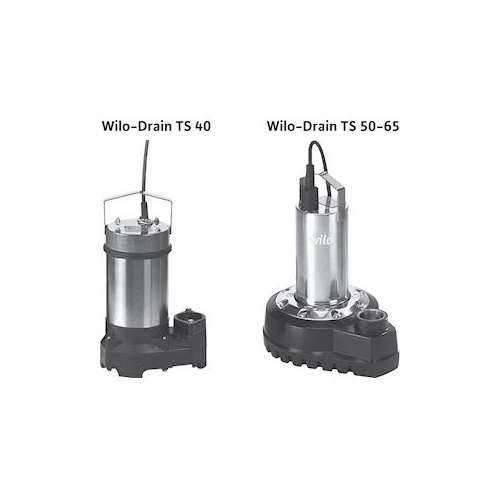 Pompe submersible Wilo-Drain TS40/10 3-400-50-2-10M KA. monobloc pour eaux usées en installation immergée stationnaire et transportable. (2063927)