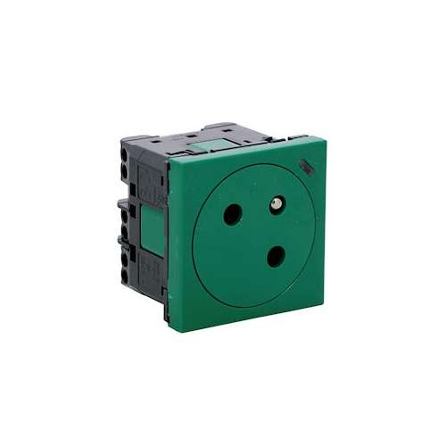 Prise de courant 2P+T Surface à voyant Mosaic Link à raccordement latéral connexion automatiques à levier - 2 modules finition vert traitement antimicrobien