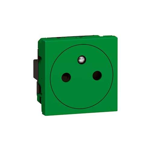 Prise de courant 2P+T Surface Mosaic 16A 230V - À équiper d'un support et d'une plaque Mosaic 2 modules Vert antimicrobien, contient des ions d'argent qui limitent le développement des bactéries en surface