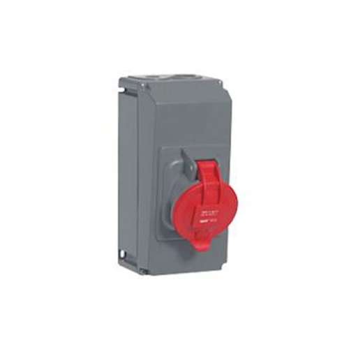 Prise saillie fixe avec boîtier réversible Hypra IP44 63A - 380V~ à 415V~ - 3P+N+T - plastique rouge - 2 entrées ISO32 dont 1 obturée par 1 bouchon B32P et 1 entrée ISO20 obturée par 1 bouchon B20P