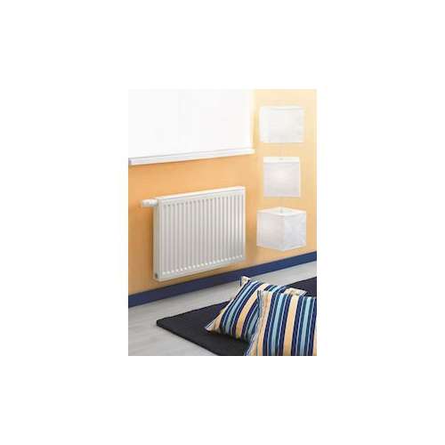 . Radiateur acier revêtu d'une peinture époxy polyester, blanc RAL 9016. . 1 jeu de consoles Genius II . Joues latérales avec clips de maintien et grille supérieure, montées d'usine . 1 bouchon purgeur Ø 1/2" . 1 bouchon plein Ø 1/2" . Pression de service maximum 10 bar . 6 orifices (4 latéraux Ø 1/2" et 2 en dessous du radiateur Ø 3/4") . Thermostatisable par simple adjonction du kit de thermostatisation. . Panneau équipé d'une rangée d'ailettes . Epaisseur 72 mm