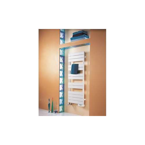 Radiateur sèche-serviettes en acier. - Fabriqué en France. - Eléments plats horizontaux (70 x 11 mm). - Collecteurs ronds diam. 38 mm verticaux. - Console de fixation soudée à l'arrière des collecteurs pour une totale discrétion et une capacité d'étendage accrue. - Traitement de surface double protection, anticorrosion, par bains de cataphorèse haute résistance et finition par revêtement en poudre époxy/polyester. - Teinte de base blanc Pure White 603 (RAL 9016). - 50 teintes au choix. - Régulation TimerProg en bas à droite de l'appareil comprenant : thermostat électronique d'ambiance Cat C, programmation possible par fil pilote 6 ordres. - En mixte : en été, utilisation en électrique grâce à sa résistance thermoplongeante. - Pression de service 4 bars (400 kPa).