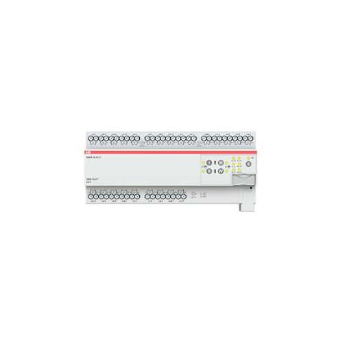 L'actionneur de commutation combiné compact 16 A dispose de 24 relais de commutation indépendants. Les sorties peuvent être utilisées individuellement via ABB i-bus® KNX pour la commutation de charges électriques ou par paires pour la commande de volets roulants ou d'entraînements de stores 230 V AC (pas de verrouillage électromécanique). L'appareil dispose d'une opération manuelle, qui peut également être désactivée. Grâce à la commande manuelle, les sorties peuvent être commandées manuellement et l'état de commutation ou de conduite est affiché. L'appareil est alimenté par KNX et ne nécessite aucune alimentation supplémentaire.
