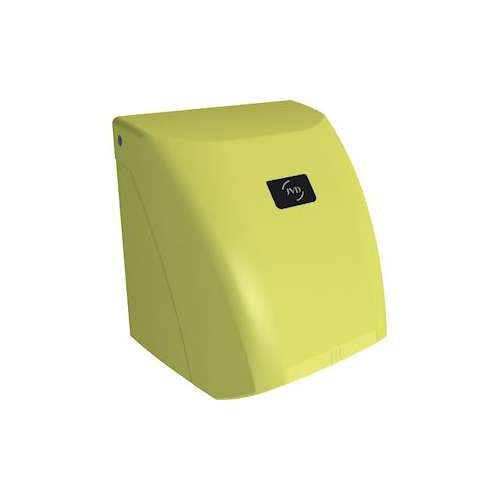 Sèche-Mains ZEPHYR vert fluo automatique à air chaud, anti-vandalisme (IK10) avec logo personnalisable. Garantie 3 ans