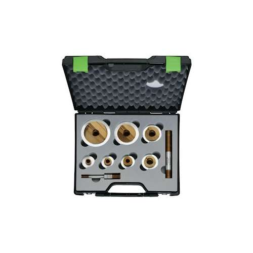 Set d'emporte-pièces SLUG-SPLITTER pour découpe ronde dans l'acier inox de diamétre ISO16/20/25/32/40/50/63. Livré en coffret avec un axe de 11,1 x 108mm et un axe de 19,0 x 140mm, pour utilisation hydraulique