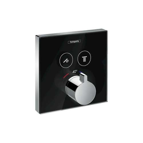 Set de finition en verre pour mitigeur thermostatique encastré avec 2 fonctions noir/chromé