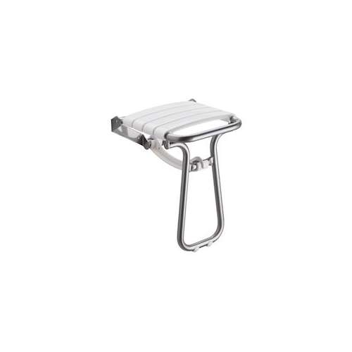 Siège de douche 4 lattes blanc, avec béquille gris chrome, H 500 mm, alu. D 25m | Pellet asc - 047631