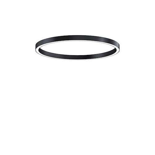 Luminaire apparent à LED en forme d'anneau à éclairage direct, avec un boîtier profilé fin en aluminium, de couleur noir, avec une optique Opale, Puissance du luminaire: 93 W, Luminaire pilotable via DALI avec convertisseur à LED ; durée de vie des LED de 50000 h jusqu'à une diminution du flux lumineux de 90 % de la valeur initiale. Tolérance de la couleur (MacAdam intial): 3. Flux lumineux du luminaire: 8065 lm, Efficacité lumineuse du luminaire: 87 lm/W. Rendu des couleurs Ra > 90, température de couleur 3000 K. Guidage de la lumière par le biais d'une optique à structure opale multicouche pour la sortie définie du flux avec UGR < 22. Boîtier profilé en aluminium laminé et extrudé, soudure sans raccords, noir thermopoudré pour une finition de surface haut de gamme ; fourniture des accessoires nécessaires à un montage au plafond ou au mur. Câblage du luminaire sans halogène. Test du filament incandescent : 650°C ; Luminaire à filerie exempte d'halogène et sans silicone ; Dimensions : Ø1500 x 85 mm, poids : 11 kg.