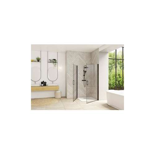Paroi Smart Design montage angle porte pivotante sans seuil XXL 140 profilé noir verre transparent