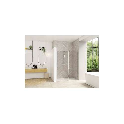 Paroi Smart Design porte pivotante XXL sans seuil 120 profilé chromé verre transparent