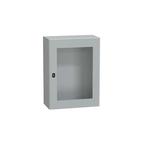 Spacial S3D - Enveloppe universelle acier - HxLxP (mm) 800 x 600 x 300 - Livré avec 1 plaque passe-câbles + 1 porte vitrée + 1 verrou - sans châssis plein - gris RAL 7035 - IP66 - IK08