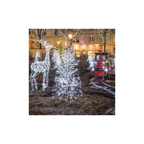 SPRAY Sapin spray H1.80m x Ø88cm Structure argent 490 LED Blanc pétillant blanc Très basse tension. Très forte densité lumineuse. Structure métallique souple façonnable. Pétillement élégant et raffiné