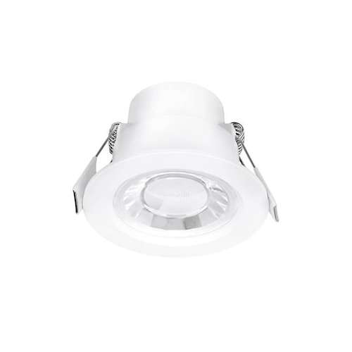 Garantie 3 ans Spot encastré LED thermoplastique faible consommation pour application résidentielle - Idéal bâtiment neuf ou rénovation Lentille polycarbonate multifacette EnFiniti™ pour un faible éblouissement et une apparence halogène Driver compact intégré pour une installation facile dans les plafonds étroits Version 8W livrée avec collerette blanche fixe, version 10W livrée avec deux collerettes blanches interchangeables ronde et carrée Précâblé avec 500mm de câble 2 brins IP44 en version fixe et basculante - Etanche à l'air