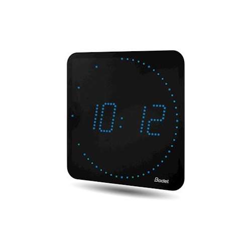 Horloge numérique à LED bleues pour intérieur Chiffres 7 cm, lisibilité 30 mètres, affichage heure-minute-seconde par ellipse lumineuse Possibilité d'alternance Boîtier noir mural, simple face Horloge synchronisée NTP Alimentation POE