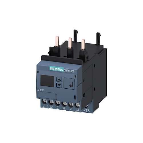 Relais de surveillance, pouvant être monté sur contacteur 3RT2, Taille S0 standard, à réglage numérique Surveillance de courant apparent/actif 4...40 A, 20...400 Hz, Triphasée Alimentation 24 V CA/CC 1 contact inverseur, 1 sortie à semicond
