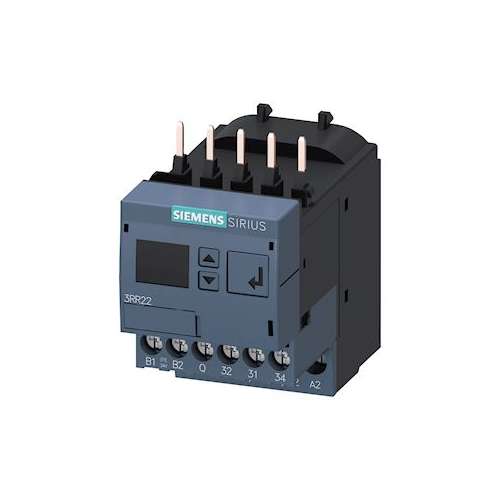 Relais de surveillance, pouvant être monté sur contacteur 3RT2, taille S00 standard, à réglage numérique Surveillance de courant apparent/actif 1,6-16 A, 20-400 Hz, Triphasée Alimentation 24 V CA/CC 1 contact inverseur, 1 sortie à semicondu