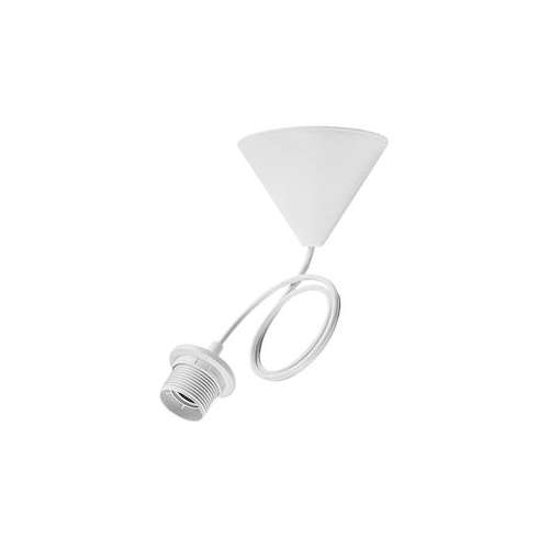 Bai Suspension Plastique Blanc 140Cm Câble Rond 2X0.75mm2 Avec Douille Thermoplastique E27 Et Rosace Coniques