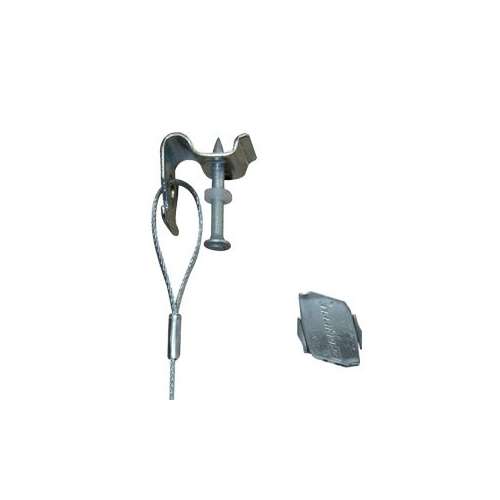 Système de suspension par câble HF Express universel. Prêt à l'emploi. Il est composé d'un câble de longueur 1m équipé d'un embout cloueur DX351 (DX22) et d'un galet N1 autobloquant à déverrouillage intégré. Charge de travail de 0-15kg