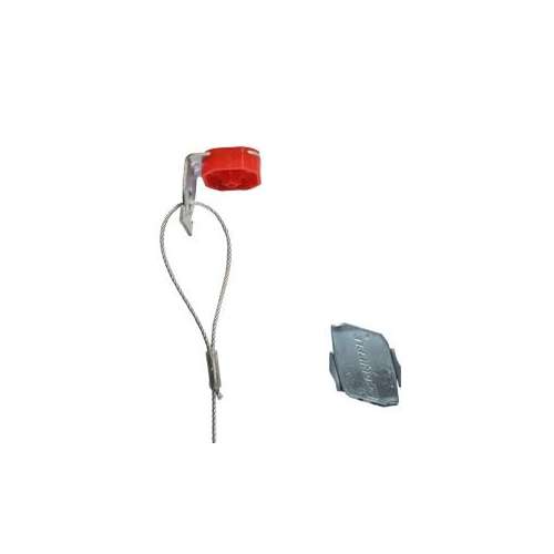 Système de suspension par câble HF Express universel. Prêt à l'emploi. Il est composé d'un câble de longueur 3m équipé d'un embout cloueur à Gaz (CG) et d'un galet N1 autobloquant à déverrouillage intégré. Charge de travail de 0-15kg