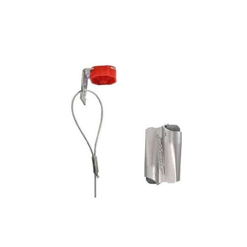 Système de suspension par câble HF Express universel. Prêt à l'emploi. Il est composé d'un câble de longueur 3m équipé d'un embout cloueur à Gaz (CG) et d'un galet N2 autobloquant à déverrouillage intégré. Charge de travail de 15-45kg