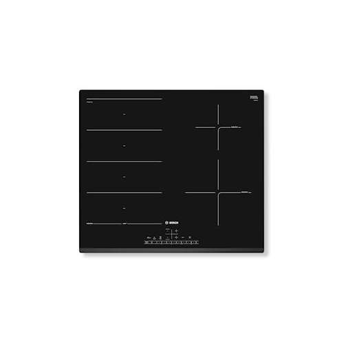 BOSCH - Table induction 60cm - SER6 - Noir - 4-foyers - Puissance de raccordement: 7.400 W - Type de commande: DirectSelect 1.0 (Timer) - Design: Biseau avant - 1 zone flex - L: 592 mm x P: 522 mm