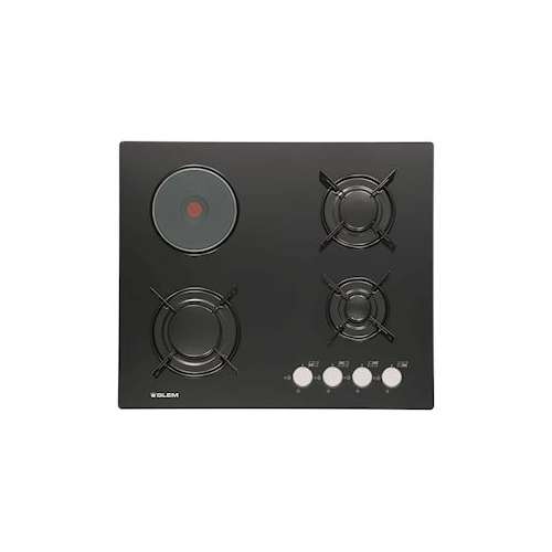 Table verre mixte 60 cm - 3 foyers gaz + 1 foyer électrique - 5,65 + 1,5 kW
