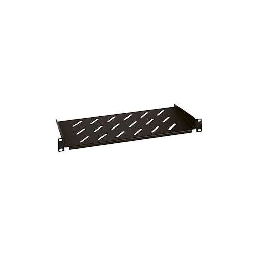 Tablette fixe en acier Linkeo à fixation en drapeau sur 2 montants 19pouces hauteur 2U profondeur 200mm - charge maximum 15kg - perforations oblongues 50x7mm, livrée avec vis et écrous-cages à picots - noir RAL9005