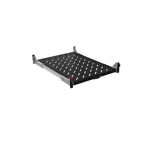 Tablette télescopique - hauteur 1U - profondeur 625mm pour armoire profondeur 800mm - fixation sur 4 montants 19pouces sans vis - charge maximum 50kg - noir RAL9005