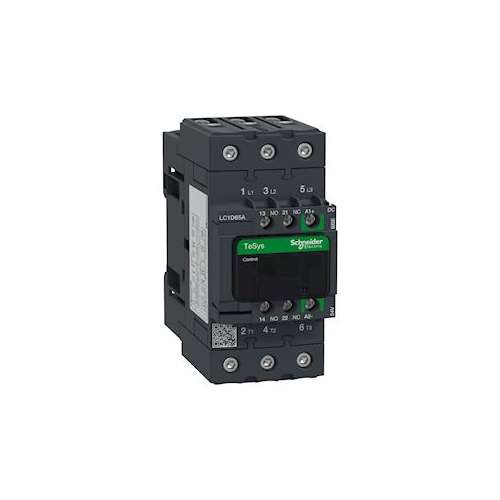 TeSys - contacteur D Green - 3P - 3F - contacts auxiliaires 1F+1O - bobine 24VCC - faible consommation c.c. - avec antiparasite - 65A (< = 60DEGC) < = 440 V AC-3 80A (< = 60DEGC) < = 440 V AC-1 - connecteurs à vis BTR EverLink