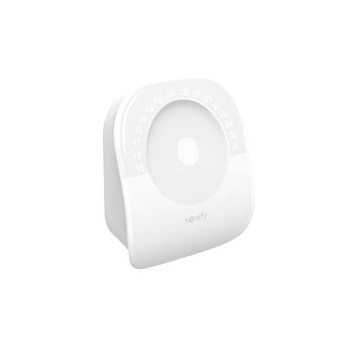 Somfy propose une solution de thermostat intelligent qui répond à vos contraintes chantier, à savoir le risque de vol et de dégradation, ou encore la non disponibilité d'internet sur place. Le thermostat io fonctionne directement avec TaHoma et ne nécessite aucune autre passerelle internet. Compatible avec un large choix de systèmes de chauffage, le thermostat io s'adaptera simplement d'un plancher chauffant, à un radiateur fil pilote ou encore une chaudière grâce à son nouvel algorithme de régulation de chauffe optimisé pour chaque système. Enfin, il s'agit d'un thermostat alimenté en 220V qui ne nécessite donc pas de piles. L'ajustement de la température peut se faire sur le thermostat (interface tactile) et sur l'application TaHoma. Il existe deux versions du thermostat io, une version radio et une version filaire. LES BÉNÉFICES Pour vous, professionnels Régulation Optimisée Grâce à sa technologie intégrée Hystérésis, et son algorithme avancé croisant les informations de la sonde de température et d'humidité avec l'inertie de chauffe du logement le thermostat io permet d'anticiper et de déterminer, avec précision, l'énergie besoin pour bénéficier, au bon moment, d'un confort optimal. Fonction détection d'un fenêtre ouverte pour limiter le gaspillage d'énergie. Une installation simple Installation rapide grâce au nouveau bornier « câblage rapide » et aux quatre trous disponibles pour fixer le thermostat dans la boite d'encastrement (horizontale ou verticale). Le thermostat est un satellite de TaHoma et ne nécessite donc pas de passerelle internet. Plus de piles à installer ! Câblage directement en 220V pour limiter le SAV lié au changement de piles et faire un geste supplémentaire pour la planète. Un réglage d'usine est pré-enregistré dans la mémoire interne du thermostat. Pour vérifier la conformité de l'installation, il suffit de donner un ordre sur l'interface tactile du thermostat et de constater la mise en route du système de chauffage. Compatibilités Compatible avec la majorité des chaudières, pompes à chaleur, plancher chauffant, radiateur fil pilote du marché, Grâce à TaHoma, le thermostat est également compatible avec IFTTT, Amazon Alexa et Google Assistant. Mémoire interne En cas de coupure internet, le thermostat se souvient de la programmation. Pour l'utilisateur Un moyen simple de faire des économies d'énergie tout en bénéficiant de la température ambiante souhaité grâce à la programmation réalisé sur TaHoma. Une interaction entre le thermostat et les volets roulants : En été, lorsque la température intérieure dépasse les 21°c alors mes volets se baissent automatiquement pour préserver la fraicheur dans le logement. Possibilité d'afficher en permanence la température mesurée sur l'écran led du thermostat.