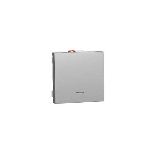 Schneider Electric | Unica - poussoir lumineux (localisation) - 10A - 2 mod - Alu - méca seul - Ref : NU320630N