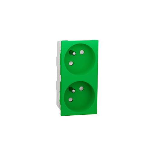 Schneider Electric | Unica - prise double 2P+T - FR - 45DEG - connexion rapide - Vert - méca seul - Ref : NU306906