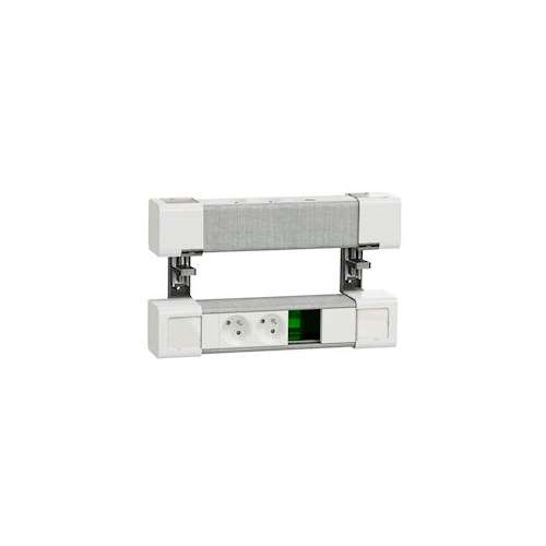 Unica System+ - module bureau dessus dessous 2 blocs nourrices multiprise précablées - 4 prises 2P+T 16A + 2 prises USB type A et C 5V 3,1A + espace VDI 4 modules - fixation par système de serrage sans perçage - blanc et tissu kvadrat