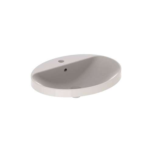 Vasque à encastrer Geberit VariForm ovale, avec plage de robinetterie: 60x48cm, trou de robinetterie au centre, avec trop-plein, Blanc