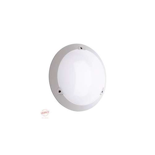 Hublot résidentiel pour parties communes, antivandalisme IK10/20 J, IP55, basse consommation Recyclé, résistant, réparable Luminaire rond (Ø 340x105 mm) en polycarbonate recyclé, diffuseur opalescent Fermeture par vis inox antivandales imperdables OFG