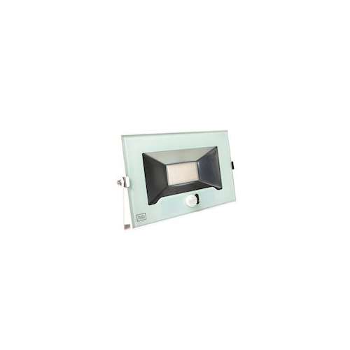 Projecteur YAKO SLIM DETECT blanc, orientable, blanc 3000K, IRC>80, 20W, 1420lm (71lm/W), optique translucide 120DEG, 230VAC. Classe I, IP65, IK08. Non dimmable. Submersible : Non.