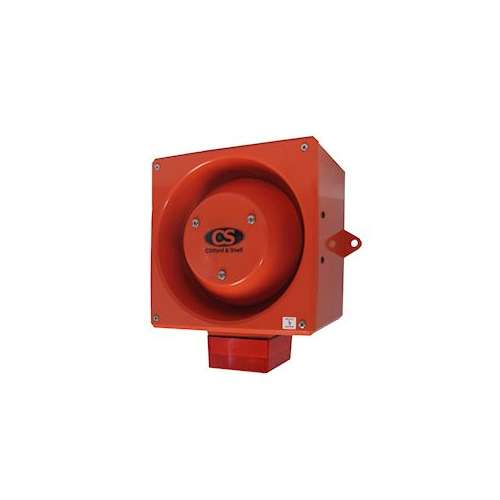 Cet avertisseur sonore et lumineux combiné fait partie de notre gamme YODALIGHT 80 ou YL80 de la marque Clifford and Snell. Ce dispositif combiné acoustique et visuel est alimenté en 48 Vcc. Il offre une puissance sonore de 116 dB ainsi qu'une puissance lumineuse de 5 joules grâce à xénon et sa lentille/verrine de couleur rouge. Composée de son boîtier en ABS et polycarbonate rouge ignifugé, de sa lentille en polycarbonate ainsi qu'un indice de protection IP66, cette sirène électronique et visuelle YL80/F50/R/RF/WR est parfaitement adaptée pour une utilisation industrielle/maritime à l'intérieur comme à l'extérieur. Cette sirène est équipée d'un système d'alarme à 2 niveaux. La 2ème sonnerie peut être sélectionnée indépendamment de la première via un commutateur DIL. Série : YL80 Marque : Clifford and Snell - C&S Type de signal : Avertisseur sonore et lumineux combiné Tension d'alimentation : 48 Vcc Puissance sonore : 116dB Tonalités : 32 Source, fonction, puissance lumineuse : Xénon flash 5J Fréquence flash : 60 FPM Couleur de la lentille : Rouge Faible consommation : 435 mA Matériau du boîtier : ABS FR UL94 5VB Matériau de la lentille : Polycarbonate PC FR UV Stable UL94 HB Couleur du boîtier : Rouge orangé Indice de protection : IP66 (IEC60529) Température de fonctionnement : -35 et +70 °C Conformité : CE, Ctick mark, MED UK, MED EU en cours Dimensions : Hauteur 276.5 mm x Largeur 219 mm x Profondeur 159 mm.