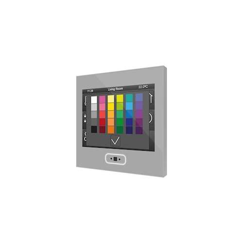 Écran tactile capacitif avec écran rétro-éclairé de 3.5", capteur de proximité, sonde interne de température et thermostats pour deux zones indépendantes. Il permet d'avoir jusqu'à 42 contrôles/indicateurs distribués sur jusqu'à 7 pages avec un menu de navigation. L'écran de veille avec heure, date et/ou température apparaît lorsque l'écran tactile n'est plus utilisé et il disparaît automatiquement pour afficher les contrôles lorsque l'utilisateur s'aaproche, grâce à son capteur de proximité. Sa luminosité est régulée automatiquement avec le capteur de luminosité inclus. Il dispose de 4 entrées analogiques-numériques qui peuvent être configurées comme entrée binaire pour capteur ou bouton poussoir libre de potentiel, comme sonde de température ou détecteur de mouvement. Accessoires: Sondes de température et détecteur de mouvement.