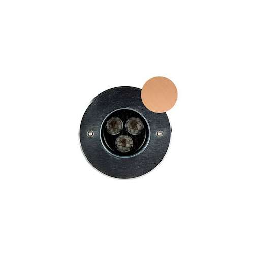 Encastré de sol ZEPH 2 SLIM - 24 rond : 116mm, bronze, collerette non percée, blanc 3000K, IRC>80, 3x2W, 418lm (69,67lm/W), verre transparent 0/50DEG (éclairage), 24VDC. Classe III, IP67. IK08. Dimmable.